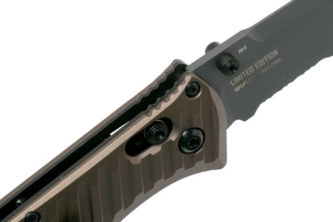 2020 IWA Exclusive Limited Edition – A fan favourite goes even further down the rabbit hole. Benchmade’s 575GY-2001 is one of three new Presidio II designs for 2020. Converted to a grey Cerakote® CPM-M4 blade, this robust folder is now even stronger. Burnt bronze anodisation on the aluminium handles compliment the gray blade finish, bringing a touch of colour to this longstanding line of survival folders. Limited to 500 pieces. This version features a part serrated edge.