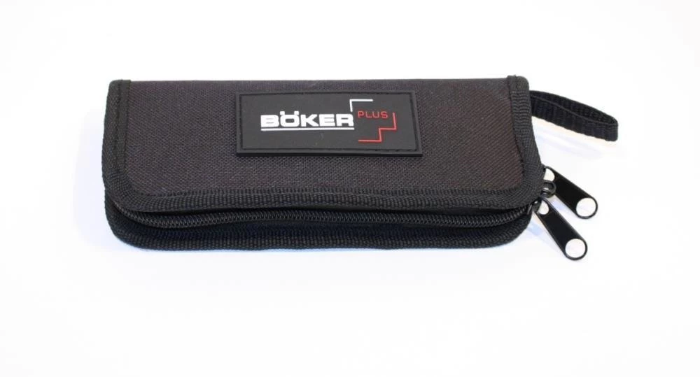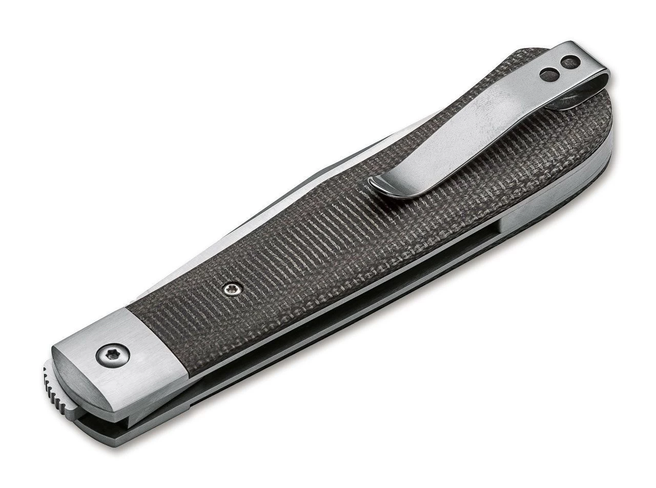 The full-sized Boker Plus Bonfire combines a classic pocket knife design with high-quality materials and perfect workmanship. The traditional look is further accentuated by the neatly fitted handle scales made of durable canvas micarta and the short stainless steel bolsters. The impressive D2 blade is finished with a fine satin finish and opens on ball bearings via nail nick or front flipper. A sturdy linerlock takes over the locking. With practical deep-carry clip (tip-up/r). Supplied in a high-quality nylon case for storage.