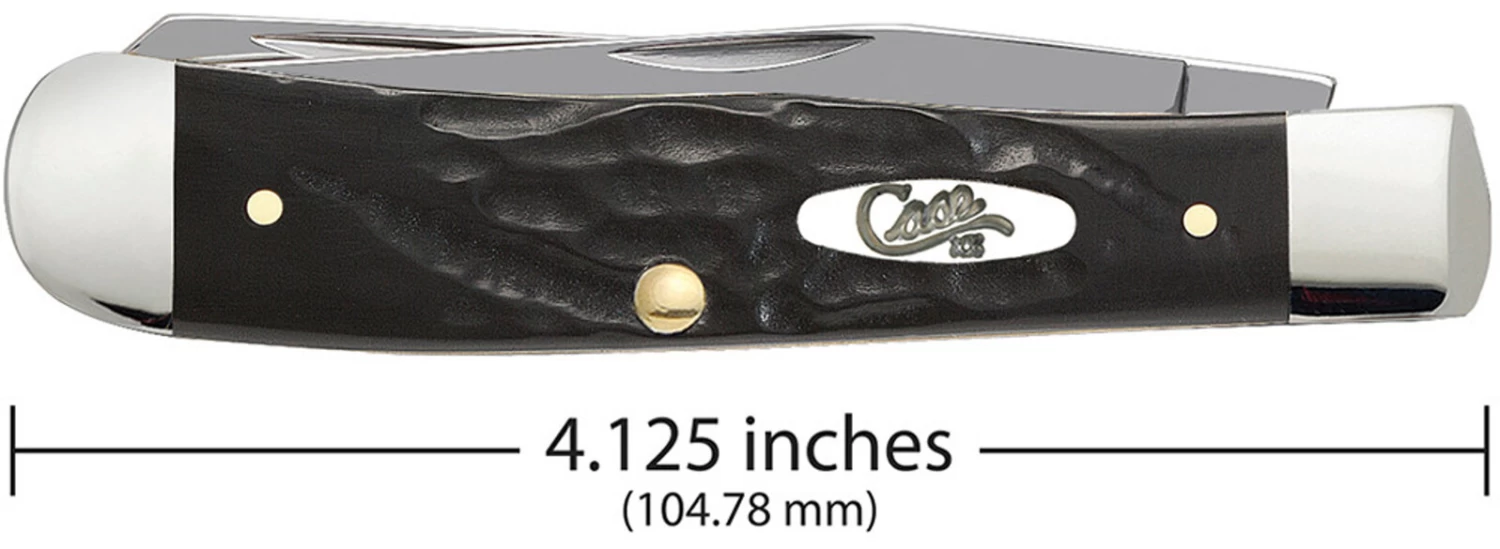 This Trapper is a part of the Rough Black® Family. This rugged, synthetic handle is inspired by our “Gum Fuddy“ knives of World War II. Virtually indestructible, choose your next tough knife from this family. The Trapper gets its name from the consumer it was designed for. Because of its basic trapping and skinning blades and its light weight, it is a must-have knife for those who trap small game. It is a jack knife with two full length blades; a slender Clip and a long Spey. The Clip blade is commonly used as a multi-purpose blade and preferred for detail work while the Spey blade is commonly used as an all-purpose utility blade. This knife is constructed with Case Tru-Sharp™ stainless steel which is a special high-carbon steel that helps the blades hold an edge longer than conventional steel. It also offers extraordinary blade strength and corrosion resistance.