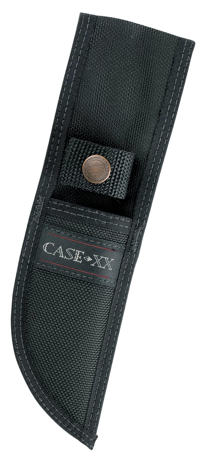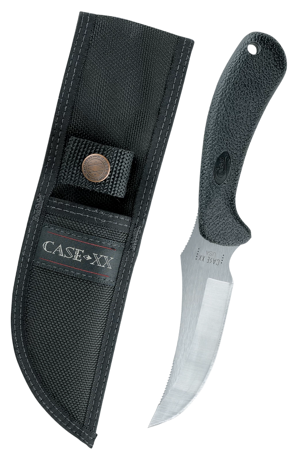 The Black Ridgeback® Hunter is a Blackie Collins design. This collection is designed for those who prefer to pack light for the outdoors. This fixed blade knife features a sabre concave ground swept Skinner blade and a black synthetic textured handle for a sure grip. This durable fixed knife has a full tang design for added strength and thumb grooves on the back of the blade for improved grip. This knife also includes a lanyard hole for your convenience. The Skinner blade is commonly used for skinning purposes or field dressing, making it a must have knife for huntsmen. This blade is constructed with Case Tru-Sharp™ stainless steel which is a special high-carbon steel that helps the blades hold an edge longer than conventional steel. It also offers extraordinary blade strength and corrosion resistance. Comes with a ballistic nylon sheath. This fixed blade knife is perfect for hunting, everyday situations, or hiking.