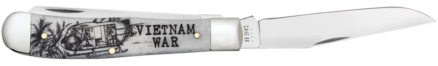 This all-new Trapper collection showcases some highly detailed handle artwork to help preserve the stories behind some of the USA’s most defining moments. The Trapper gets its name from the consumer it was designed for. Because of its basic trapping and skinning blades and its light weight, it is a must-have knife for those who trap small game. It is a jack knife with two full length blades; a slender Clip and a long Spey. The Clip blade is commonly used as a multi-purpose blade and preferred for detail work while the Spey blade is commonly used as an all-purpose utility blade. This knife is constructed with Case Tru-Sharpâ„¢ stainless steel which is a special high-carbon steel that helps the blades hold an edge longer than conventional steel. It also offers extraordinary blade strength and corrosion resistance.