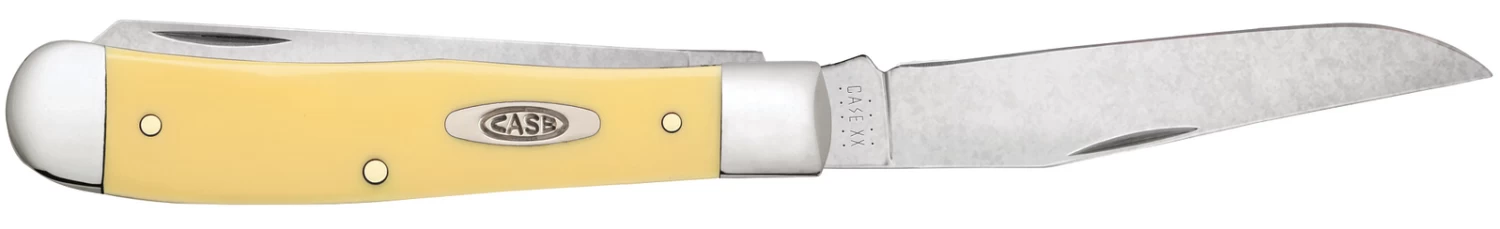 This Trapper is a part of the Yellow Synthetic Family. The distinctive yellow handle brightens this family while maintaining its toughness, making it one of the most beloved in the Case line. The Trapper gets its name from the consumer it was designed for. Because of its basic trapping and skinning blades and its light weight, it is a must-have knife for those who trap small game. It is a jack knife with two full length blades; a slender Clip and a long Spey. The Clip blade is commonly used as a multi-purpose blade and preferred for detail work while the Spey blade is commonly used as an all-purpose utility blade. This knife is constructed with Case Tru-Sharpâ„¢ stainless steel which is a special high-carbon steel that helps the blades hold an edge longer than conventional steel. It also offers extraordinary blade strength and corrosion resistance.