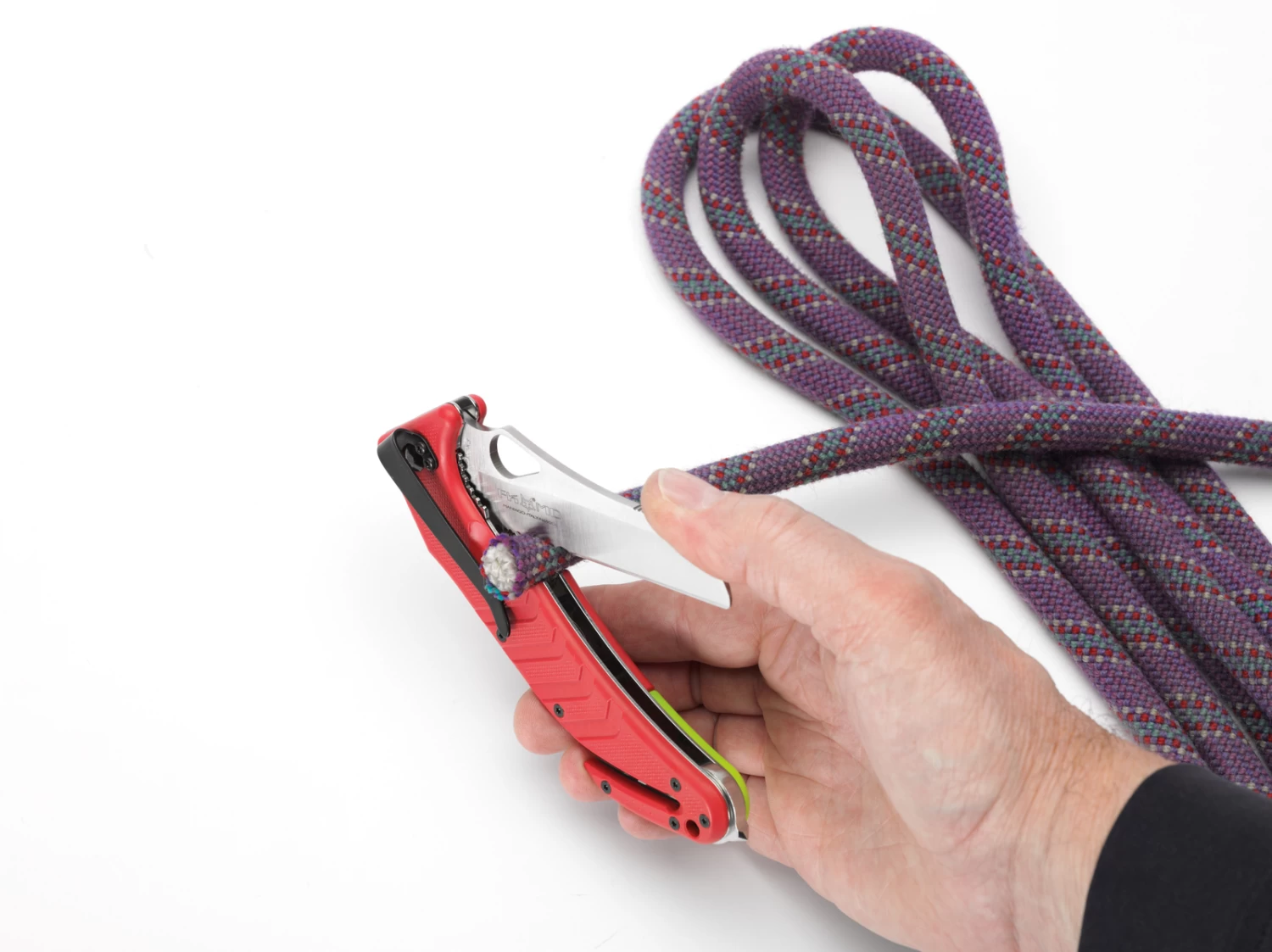 The Fox Knives A.L.S.R. folding knife with hi-viz red/yellow forprene handles and partially serrated blade, integrated strap cutter and glass breaker is a first responders’ go to tool.