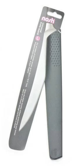 When benchtop space is limited and your knife block is full, there is a solution for the safe storage of your valuable knives. Nosh knife guards are made from a flexible polypropylene sheath that is gentle on blades while the textured grip on the outside of the sheath offers extra safety and control for the user.