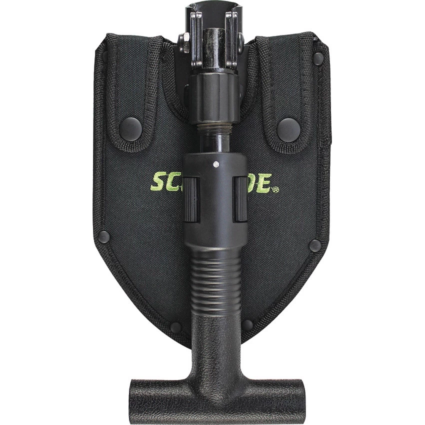 Schrade® Telescoping Folding Shovel, Steel Sharpend Shovel, Telescoping Handle, PP Handle with Aluminum Inner Tube, Black Polyester Belt Sheath.