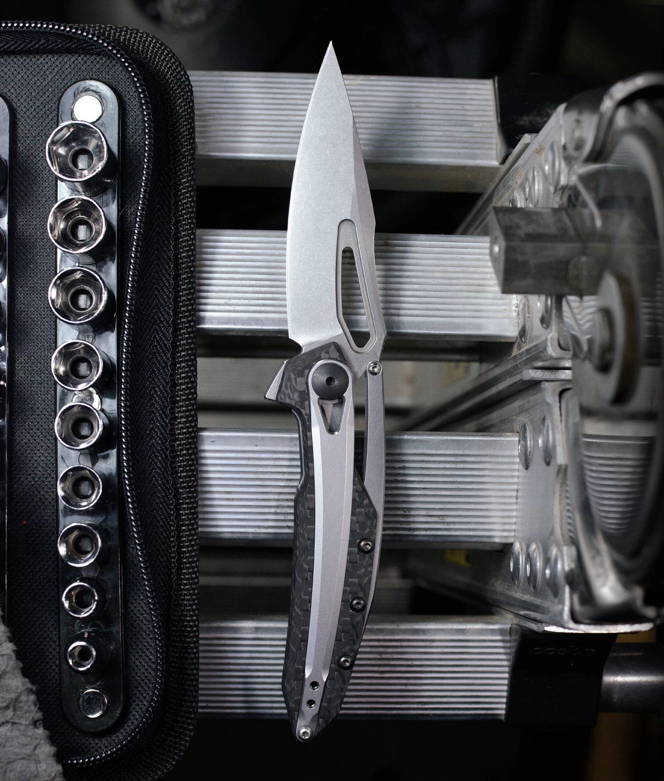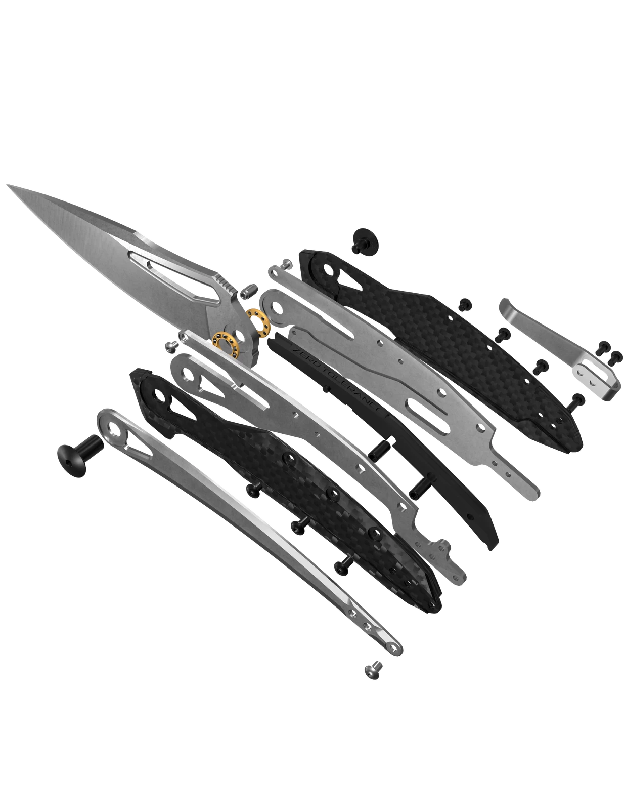 Based on the award-winning 0999, the 0990 streamlines this legendary design. Despite its skeletonized structure, this ZT is reliably strong thanks to its steel construction. Other elements pay homage to the original 0999, including an exposed “floating bridge” near the top of the handle, carbon fiber scales with a front steel overlay, and cutout windows in the blade and near the pivot. Instead of a ZT logo on the blade itself, the words “Zero Tolerance” are subtly debossed into the backspacer. The CPM 20CV blade offers excellent edge retention and opens reliably with KVT ball bearings. Once unobtainable for most, the 0990 offers the best way to bring the legend home.